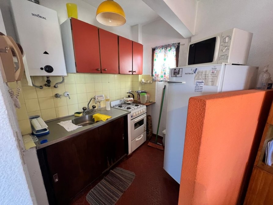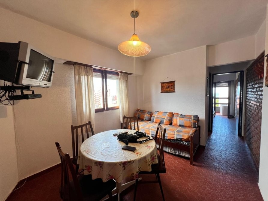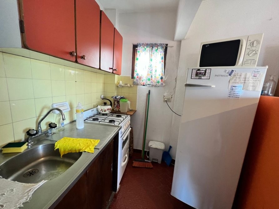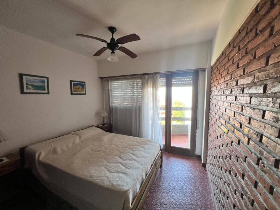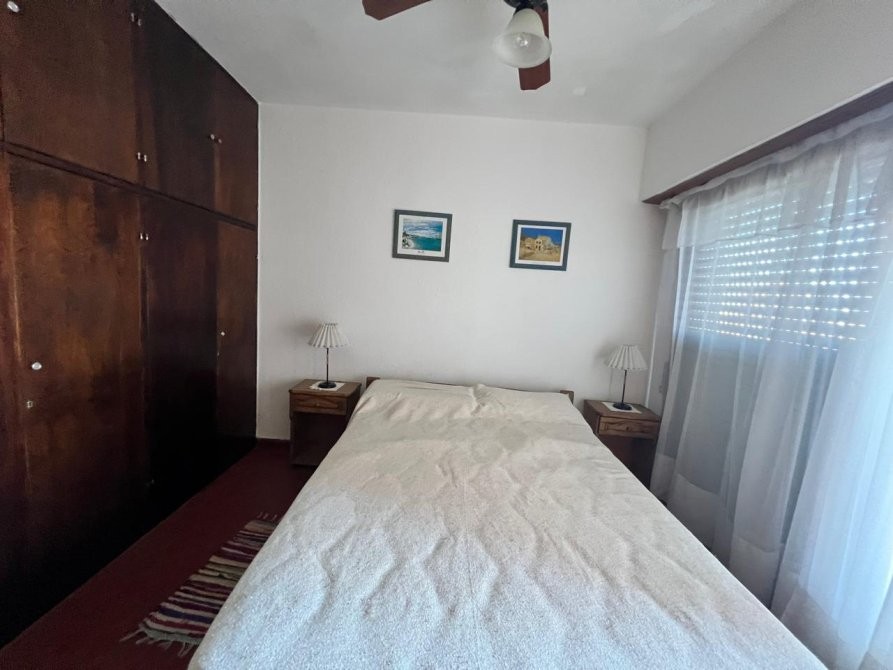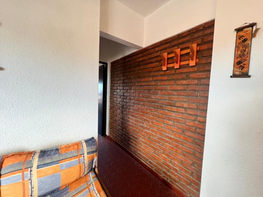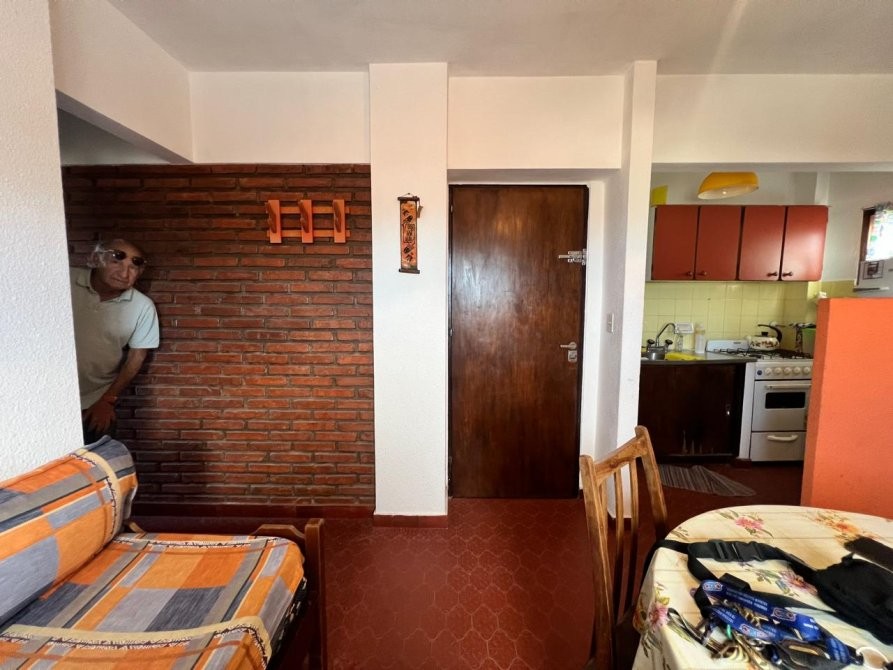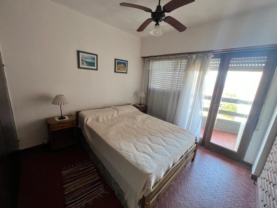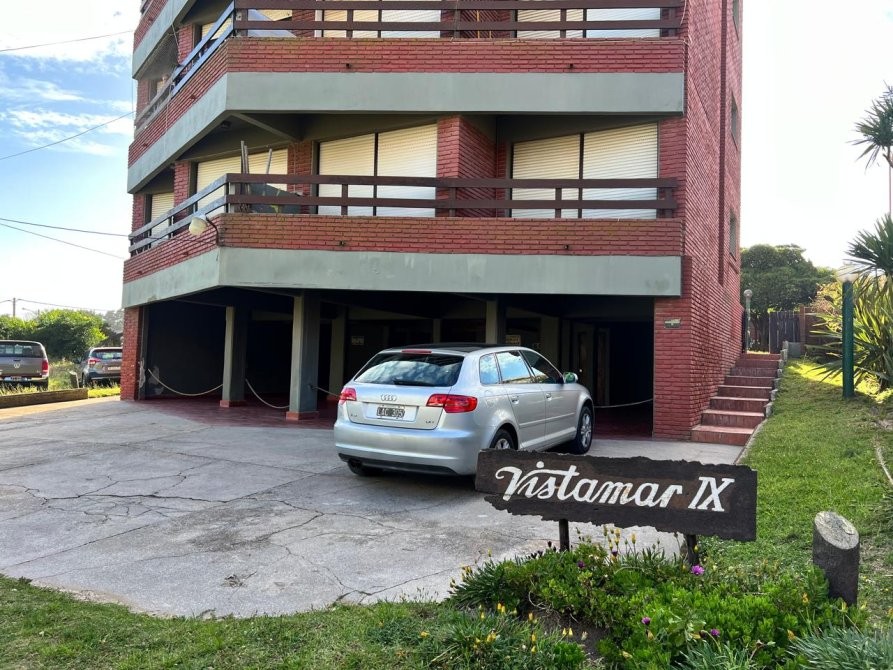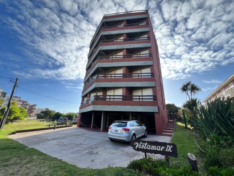 Departamento de 35 m² ubicado en un edificio de varios pisos con vista al mar, con acceso vehicular en planta baja y áreas verdes comunes. La unidad dispone de un dormitorio y un baño, con una distribución funcional que integra cocina equipada, espacio de comedor y estar. El dormitorio cuenta con placard, ventilador de techo y salida a un balcón, aportando ventilación natural. El baño se encuentra completamente instalado, con ventana al exterior. El edificio presenta jardines arbolados, parrilla y espacio exterior compartido, brindando un entorno agradable. Se observa estacionamiento en el área común al frente del edificio.